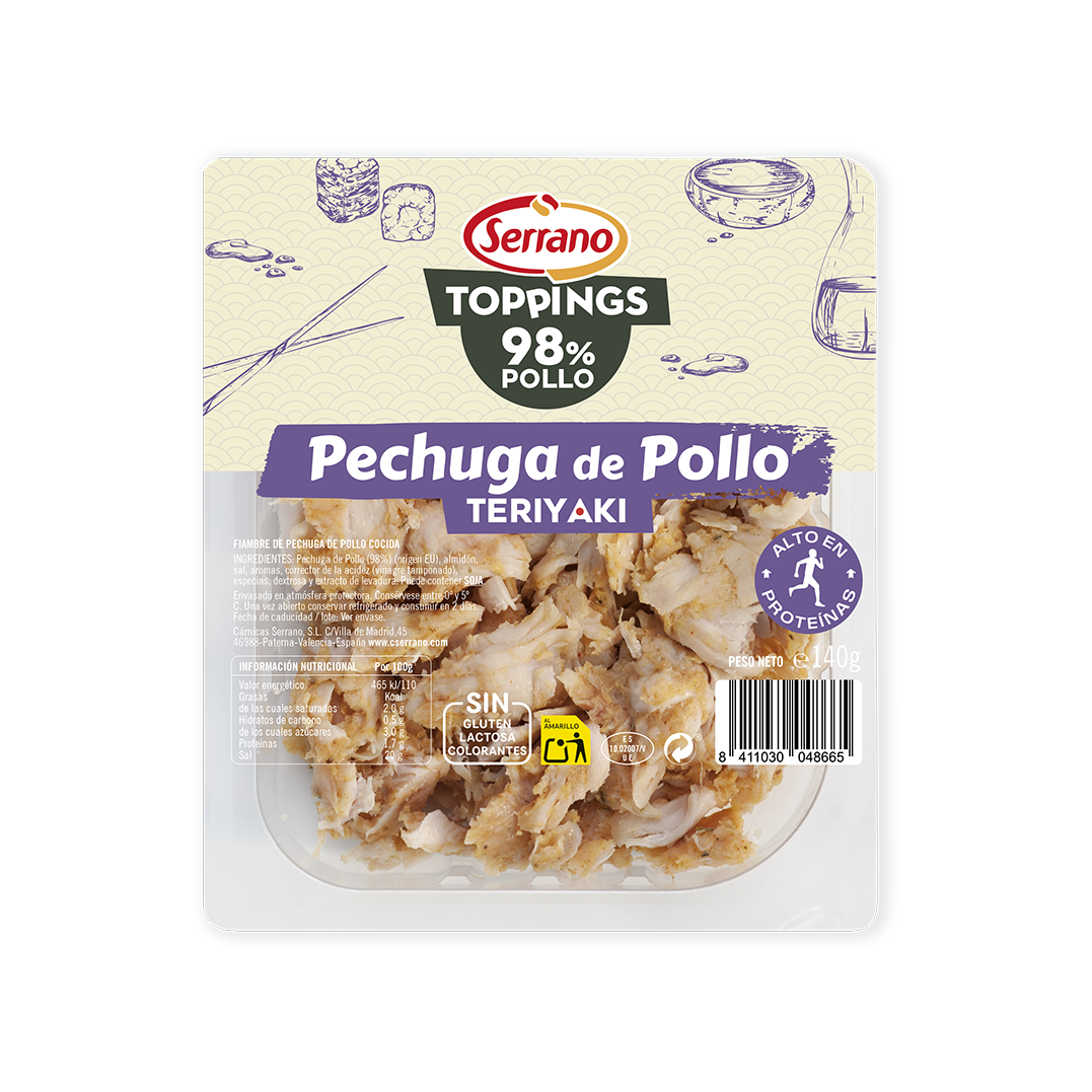 Los toppings de pollo Teriyaki te transportarán al sabor de la tradicional receta japonesa. Con un 98% de Pollo y el toque dulce del Teriyaki lo hacen perfecto para elaborar una comida rápida, saludable y llena de sabor.