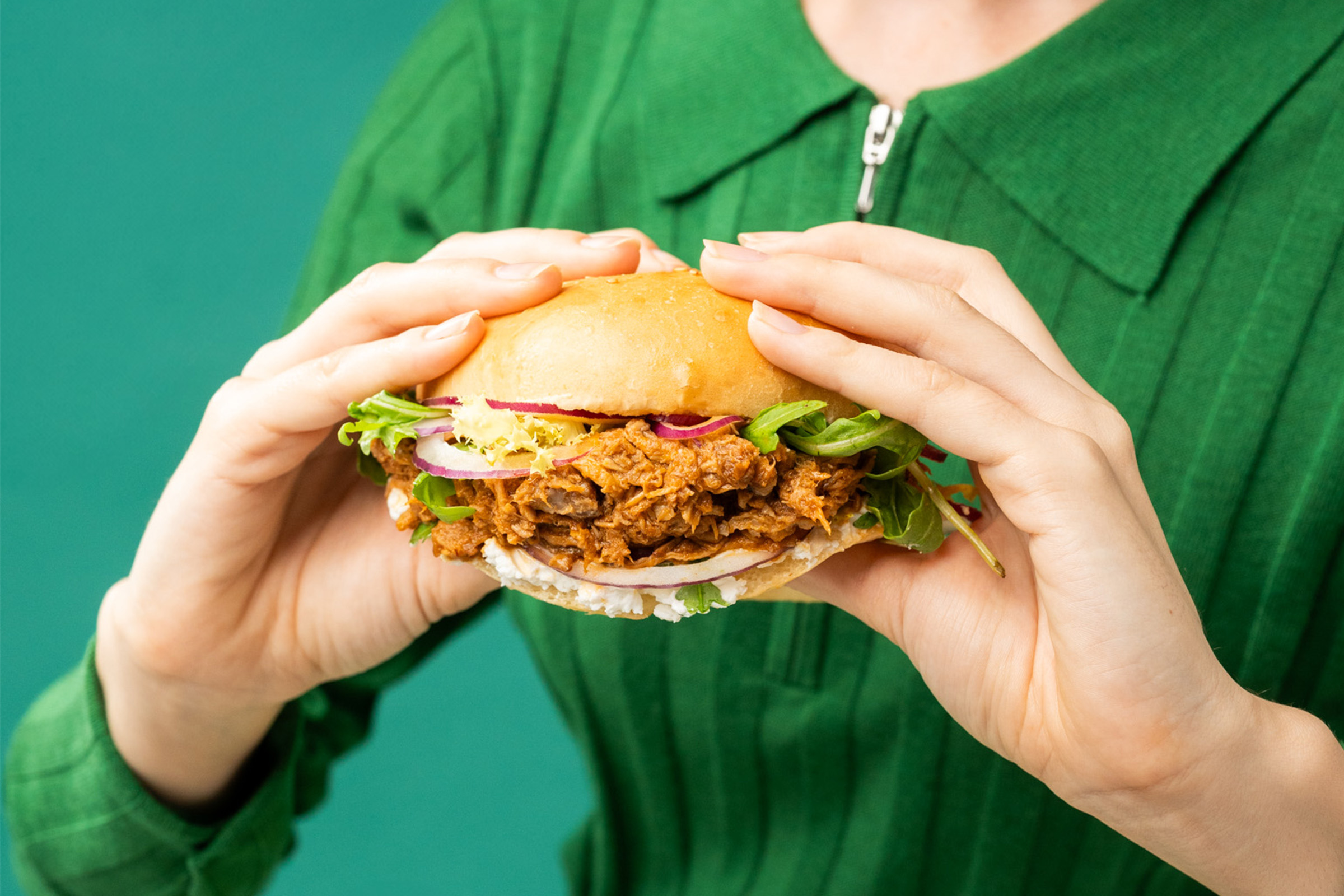Añade la cebolla, la ensalada y rellena con el Pulled Pork calentado según las instrucciones del paquete. PASO 5