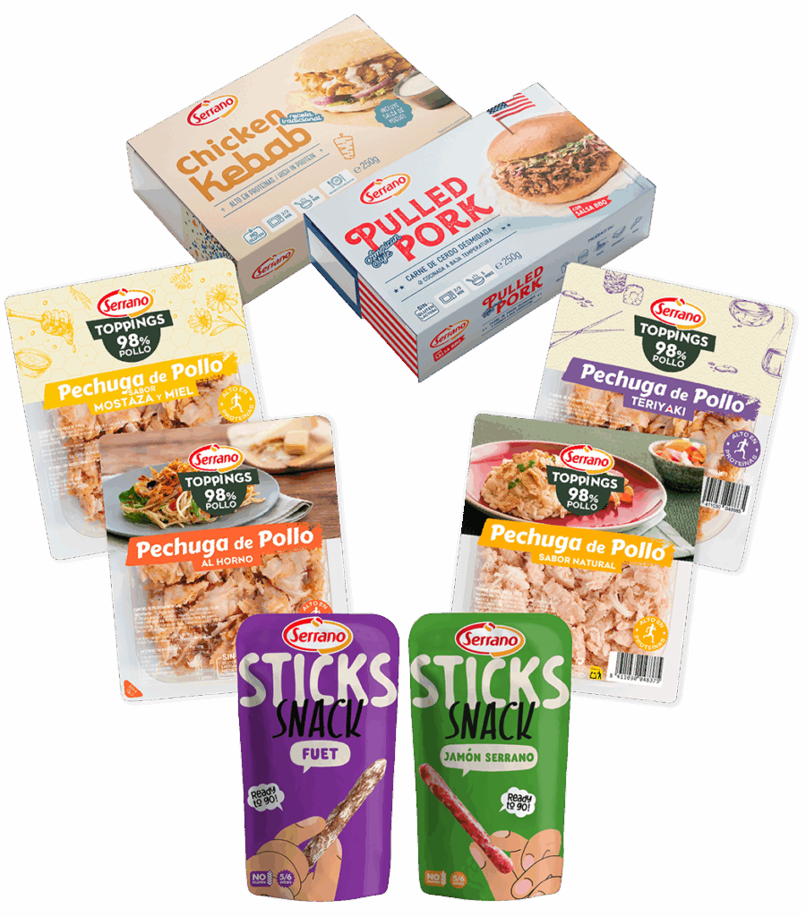 ¡Una gama de toppings con 98% de carne! Lista para consumir, en prácticos y atractivos formatos, pensada para adaptarse a cualquier estilo de vida y momento del día.
